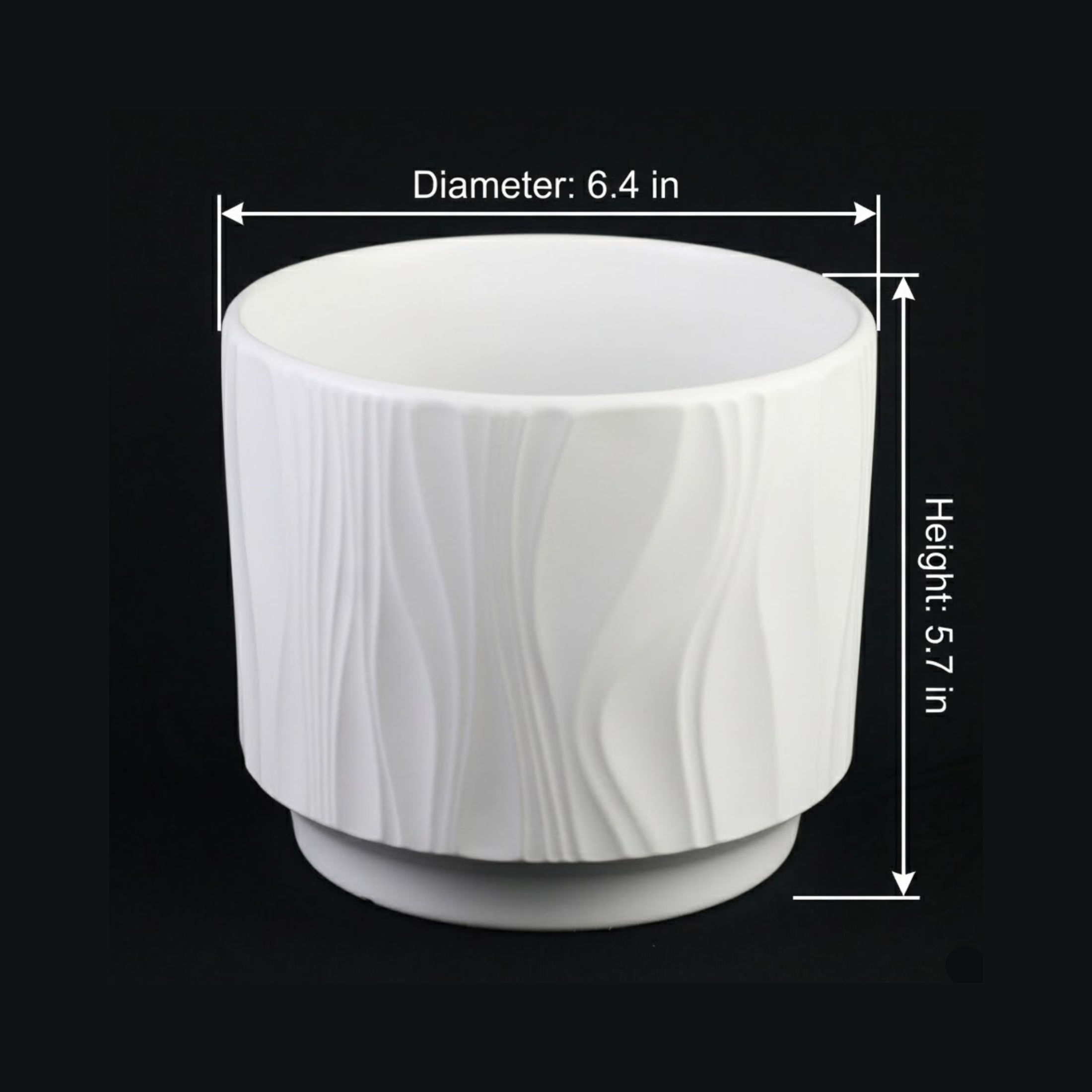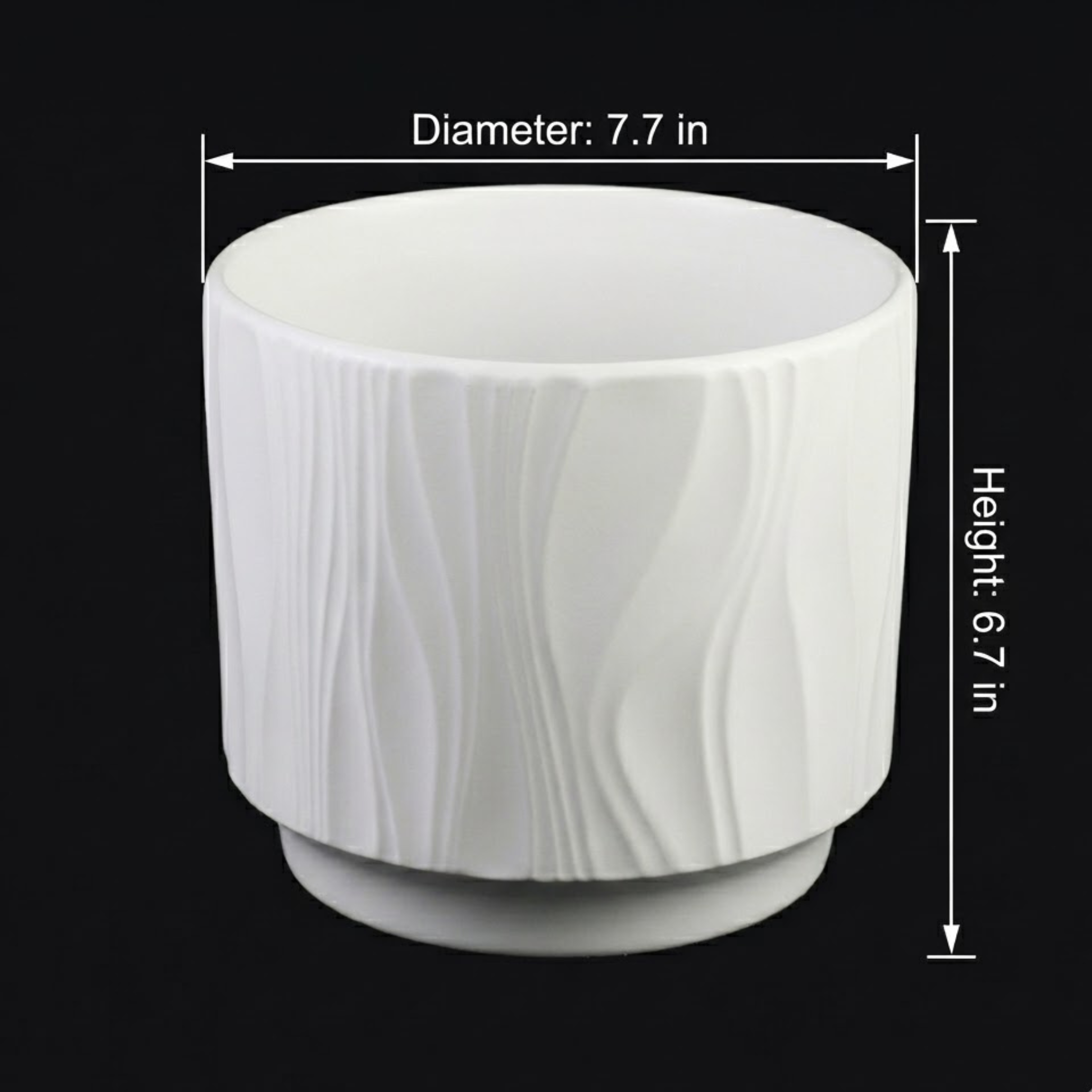 3-Piece White Stoneware Planter Pot Set with Vertical Line Texture