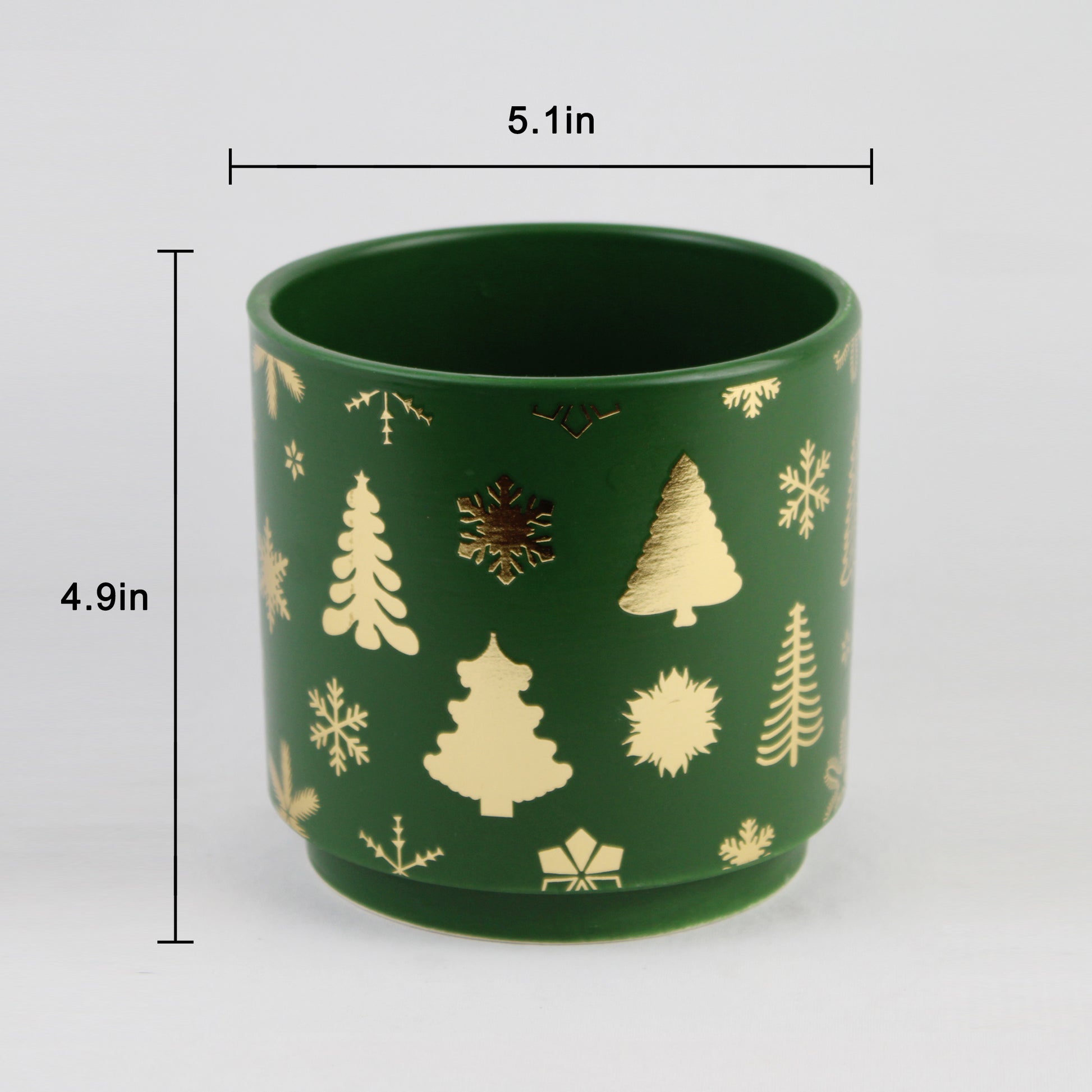 Featuring golden-foil illustrations of Christmas trees, snowflakes, and winter foliage, these ceramic pots are available in two classic holiday colorways: deep red and pine green. Whether placed on your mantel, dining table, or windowsill, they add seasonal charm to any space.