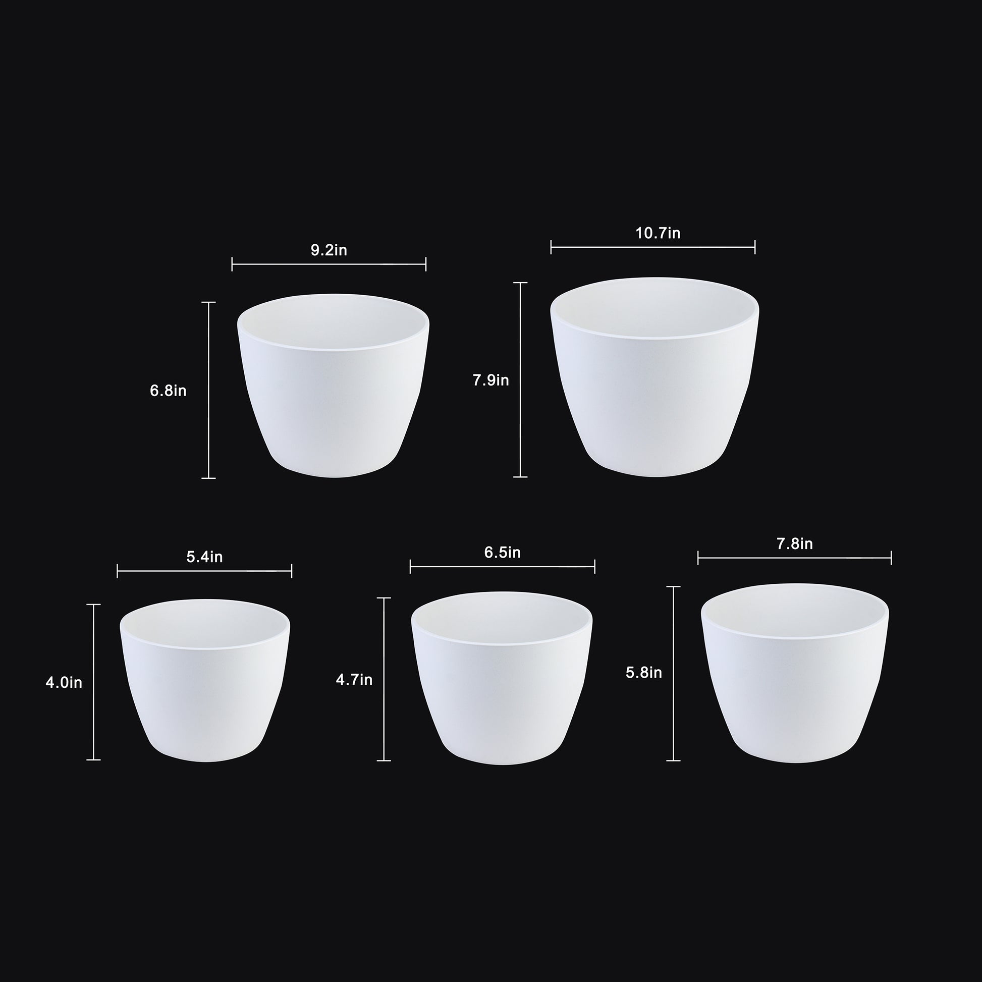 Bring a clean, modern look to your plant displays with this 5-piece White Plastic Planter Pot Set. Designed in a classic round shape with a smooth matte finish, these lightweight yet sturdy pots are perfect for both indoor and outdoor use.
